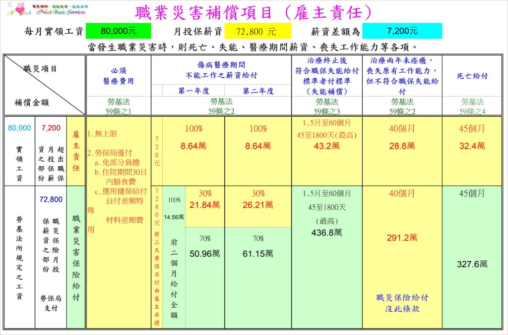 須自行承擔超過投保職保部份