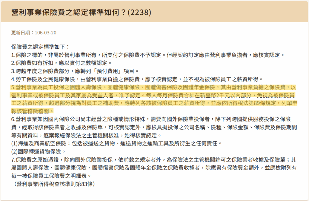 2.保險費認列營業費用 降低企業成本