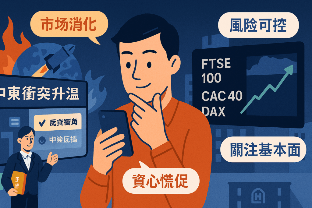📄 新聞內容:儘管以色列與伊朗衝突升溫,但國際市場初步解讀此次事件對能源與供應鏈影響可控,歐洲三大股市在週一皆收漲。投資人聚焦企業財報與央行利率政策,市場風險偏好略回升,顯示資本市場對地緣政治具一定消化能力。