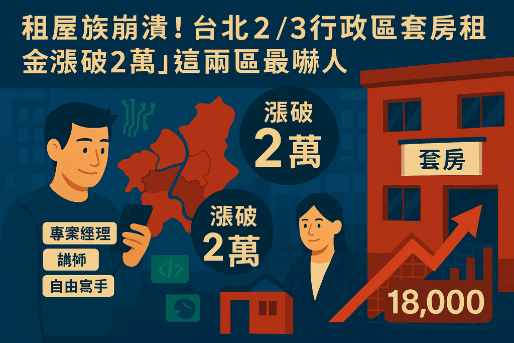 📌租屋族崩潰!台北2/3行政區套房租金「漲破2萬」這兩區最嚇人