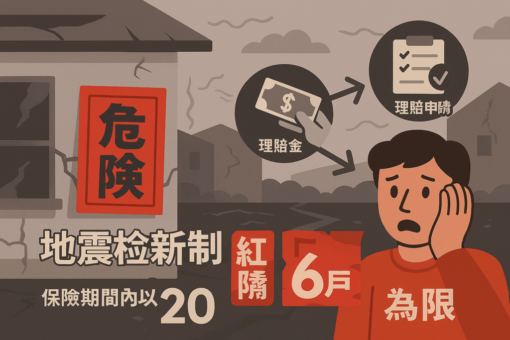 📌 地震險新制 理賠「紅單」災戶 保險期間內以20萬元為限
